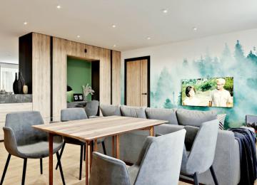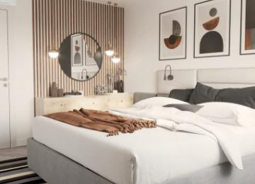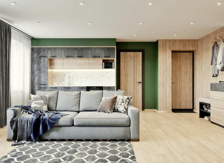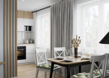 1 этаж / 3 комнаты: 2 спальни, студия с зоной кухни / 1 сан. узел